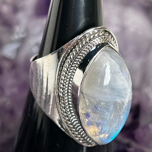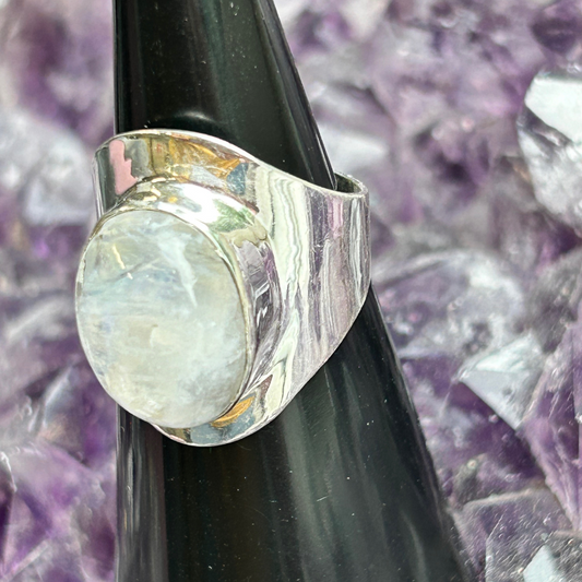Labradoriet wit ring (ook wel regenboog maansteen genoemd)